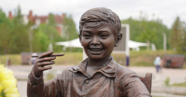 1963 جىلى «مەنىڭ اتىم قوجا» شىعارماسى جەلىسىمەن «قازاقفيلم» ستۋدياسى تۇسىرگەن بالالار فيلمىندەگى قوجا كەيىپكەرىنە ورناتىلعان ەسكەرتكىشتىڭ جالپى بيىكتىگى 183 سم, قولا, گرانيت ماتەريالدارىنان جاسالعان.
