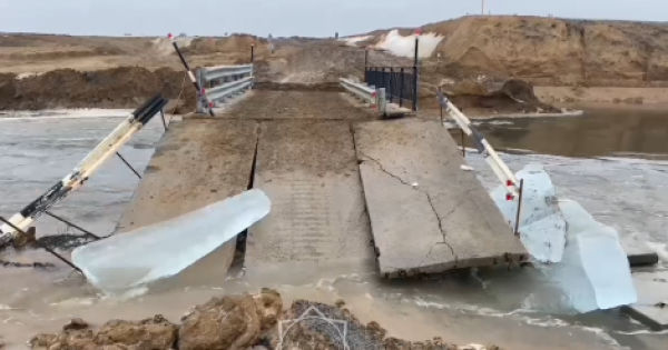 قازىر تجم 20982 اسكەري ءبولىمىنىڭ قىزمەتشىلەرى ۋاقىتشا كوپىردى نىعايتۋ ءۇشىن ينەرتتى ماتەريالدارى بار قاپتاردى تولتىرىپ جاتىر. كوپىردى قالپىنا كەلتىرۋ جۇمىسى سۋ دەڭگەيى تومەندەگەندە باستالادى.