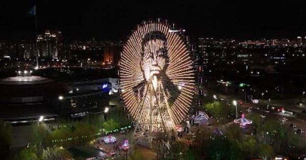 دياگونالى 65 مەتردى قۇرايتىن الىپ ينستاللياتسيا 53 مىڭ پيكسەلدەن تۇرادى جانە تۇنگى قالا كەلبەتىنە كورىك بەرىپ, الىستان انىق كورىنەدى. ابايدىڭ بەينەسى سارىارقا مەن تۇران داڭعىلدارىنان, سونداي-اق قورعالجىن تاس جولى جاعىنان كوزگە تۇسەدى.