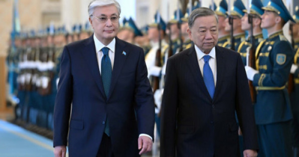 قاسىم-جومارت توقاەۆ پەن تو لام ءبىر-بىرىنە دەلەگاتسيا مۇشەلەرىن تانىستىردى. بۇدان كەيىن قۇرمەت قاراۋىلىنىڭ باستىعى راپورت بەرىپ, قازاقستان مەن ۆەتنامنىڭ مەملەكەتتىك ءانۇراندارى شىرقالدى.