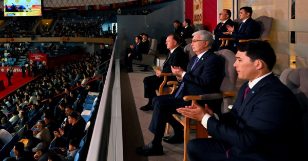 ءتۋرنيردى مەملەكەت باسشىسىمەن بىرگە حالىقارالىق دزيۋدو فەدەراتسياسىنىڭ (IJF) پرەزيدەنتى ماريۋس ۆيزەر, وليمپيادا چەمپيونى ەلدوس سمەتوۆ تاماشالادى.