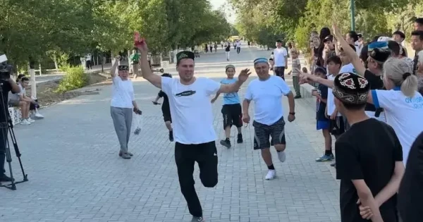 «دوستىق» ءۇيىنىڭ الدىنداعى ارباتتان باستالعان شاراعا جينالعاندار تاقيا كيىپ, جارىس جولىنا شىقتى. ءبىر شاقىرىم جۇگىرگەن قاتىسۋشىلار كورگەن جۇرتقا ەرەكشە كوڭىل-كۇي سىيلادى.