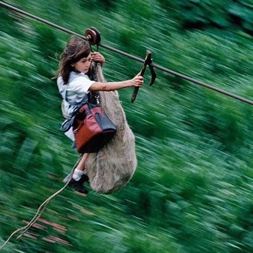 كولۋمبيانىڭ تاۋلى اۋىلدارىندا تۇراتىن بالالار ءۇشىن مەكتەپكە جەتۋ – وڭاي شارۋا ەمەس. جولداعى جارتاستار مەن وزەندەردى كەسىپ ءوتۋ وتە قاۋىپتى. سوندىقتان جەرگىلىكتى جۇرت بالالارىنىڭ قاۋىپسىز ءوتۋى ءۇشىن ەرەكشە ءادىس ويلاپ تاپقان.