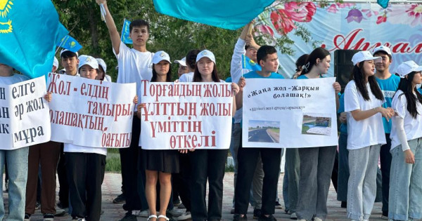 قاتىسۋشىلار قالا كوشەلەرىمەن مەملەكەتتىك تۋلاردى الىپ, پاتريوتتىق ۇراندارمەن ءجۇرىپ ءوتتى. بۇل – ەلدىڭ دامۋىنا جاستاردىڭ قولداۋ ءبىلدىرۋىنىڭ ايقىن كورىنىسى بولدى.