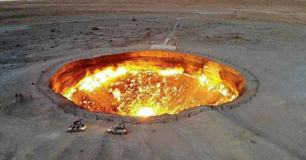 1971 جىلى كەڭەستىك گەولوگتەر بۇرعىلاۋ كەزىندە جەر استىنداعى تابيعي گازعا تاپ بولىپ, توپىراق وپىرىلىپ تۇسكەن. گاز تارالماسىن دەگەن ماقساتپەن وعان ادەيى وت قويعان. ماماندار وت بىرنەشە كۇندە وشەدى دەپ بولجاعانىمەن, ول 50 جىلدان بەرى ءالى سونگەن جوق. حالىق اراسىندا «توزاق قاقپاسى» اتانىپ كەتكەن بۇل جەر قازىر تۋريستەر كوپ باراتىن كورنەكتى ورىنعا اينالدى. جانىپ تۇرعان كراتەردىڭ ديامەترى شامامەن 70 مەتر, تەرەڭدىگى 30 مەتر.