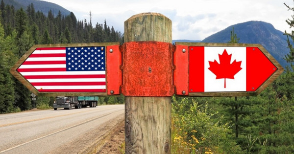ەكى ەلدىڭ شەكاراسى تىنىق مۇحيتى جاعالاۋىنان اتلانت مۇحيتىنا دەيىنگى اۋماقتى قامتيدى. ەڭ قىزىعى – شەكارانىڭ ءبىر بولىگى الياسكا ارقىلى وتەدى. ياعني بۇل شەكارا ەكى ەلدىڭ نەگىزگى ماتەريگىن عانا ەمەس, اقش-تىڭ الياسكا شتاتىمەن كانادانىڭ سولتۇستىگىن دە بايلانىستىرادى. كەي تۇسىندا بۇل شەكارا تىعىز ورمان, وزەن-كول, ءتىپتى ادام اياق باسپاعان جابايى تابيعات ارقىلى وتەدى. ەكى ەل اراسىندا قورشاۋ دا, بەكىنىس تە جوق. كوپ جاعدايدا بەلگى رەتىندە شەكارا سىزىعىنىڭ بويىنا ورناتىلعان تاقتايشالار مەن تىرەكتەر عانا بار.