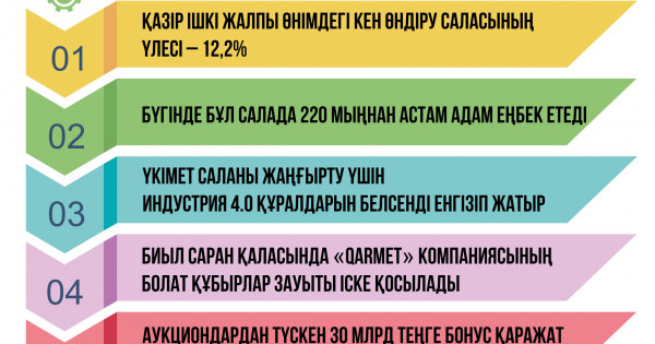 «Бүгінде әлемдік нарықта мыс, мырыш, темір мен алюминийге деген сұраныс жоғары. Бұл – біз үшін үлкен мүмкіндік. Алайда біз тек шикізат экспорттаушы ел болып қала берсек, қосылған құннан айырыламыз. Сондықтан қазірден бастап терең өңдеуді жолға қоюымыз қажет. Сондықтан отандық экономиканы әртараптандыру мақсатында өңдеу өнеркәсібін дамытудың маңызы өте зор. Қазір ішкі жалпы өнімдегі өңдеу өнеркәсібінің үлесі шамамен 14%-ды құрайды әрі ол кен өндіру саласынан 2%-ға жоғары (12,2%). Осы үрдісті алдағы уақытта да сақтап қалу керек», деді Премьер-министр.