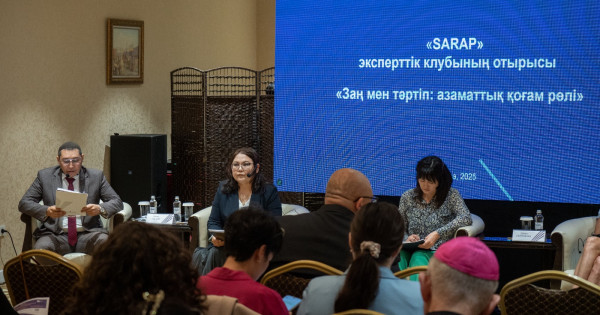 – مەملەكەت باسشىسى بىلتىرعى جولداۋىندا «زاڭ مەن ءتارتىپ» قاعيداتىنا ايرىقشا توقتالسا, جىل باسىندا «انا ءتىلى» گازەتىنە بەرگەن سۇحباتىندا «زاڭ مەن ءتارتىپ» قاعيداتى – شىن مانىندە كەمەل دەموكراتيانىڭ تىرەگى, قۇقىقتىق مەملەكەتتىڭ نەگىزى. سوندىقتان ءبىزدىڭ مىندەتىمىز – بۇل قاعيداتتى ەلىمىزدىڭ قۇندىلىقتار جۇيەسىنە بارىنشا كىرىكتىرىپ, حالىق بولمىسىنىڭ, قوعام ءومىرىنىڭ اجىراماس بولىگىنە اينالدىرۋ» دەگەن بولاتىن. سوندىقتان كونستيتۋتسيا كۇنى قارساڭىنداعى «Sarap» جيىنىن قۇقىق جۇيەسىنىڭ دامۋى, ادىلەتتىلىك پەن تەڭدىك قاعيداتتارىنىڭ نىعايۋى, سونداي-اق ەلىمىزدە كەمسىتپەيتىن ورتا قۇرۋعا قاتىستى نەگىزگى ماسەلەلەردى كاسىبي جانە اشىق فورماتتا تالقىلاۋعا ارنادىق, – دەدى مودەراتور.