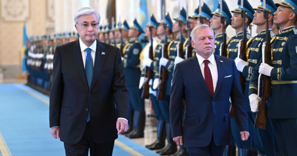 قاسىم-جومارت توقاەۆ پەن كورول ءىى ابداللا ءبىر-بىرىنە دەلەگاتسيا مۇشەلەرىن تانىستىردى. سودان سوڭ قۇرمەت قاراۋىلى روتاسىنىڭ باستىعى راپورت بەرىپ, ەكى ەلدىڭ مەملەكەتتىك ءانۇراندارى ورىندالدى.
