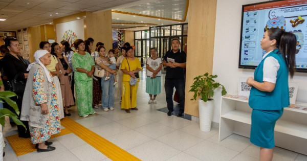 جۇمىس بارىسىمەن مەكتەپتىڭ پەداگوگ - ۇيىمداستىرۋشىسى ارۋجان كارىمقىزى تانىستىردى. اتا-انالار دا جۋرناليستەرمەن بىرگە عيماراتتى ارالاپ كوردى. مەكتەپتىڭ 360 ورىنعا ارنالعان اسحاناسى, 500 ورىندىق ءماجىلىس زالى تالاپقا ساي. كەڭ دە اسەم سپورت زالى ورنالاسقان. باستاۋىش سىنىپ بولمەلەرى دە ادەمى, جيناقى. ءار قاباتتا كوۆوركينگ. مەديتسينالىق بولمە, شىعارماشىلىق جۇمىس بولمەلەرى جۇمىس ىستەيدى. حيميا, بيولوگيا كابينەتتەرى دە سوڭعى ۇلگىدەگى قوندىرعىلارمەن جابدىقتالعان. كىتاپحانادا 13 مىڭ دانا كىتاپ قورى بولسا, ادەبي كوركەم تۋىندىلار 4020 دانانى قۇرايدى.