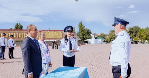 ال ىشكى ىستەر قاتارىنا جاڭادان كىرگەن جاس پوليتسيا قىزمەتكەرلەرى ارىپتەستەرىنىڭ الدىندا وتانعا جانە حالىققا ادال قىزمەت ەتۋگە انت بەردى.
