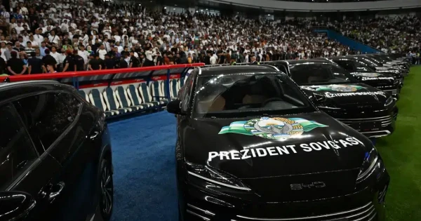 افك شەشىمىندە «امبۋش-ماركەتينگ» ۇعىمى دەپ فۋتبولشىلاردى ماراپاتتاۋ كەزىندە BYD اۆتوكولىكتەرىنىڭ تىكەلەي ستاديون الاڭىنا قويىلىپ, سول جەردە سىيلىق رەتىندە تابىستالۋى تۇسىندىرىلەدى.