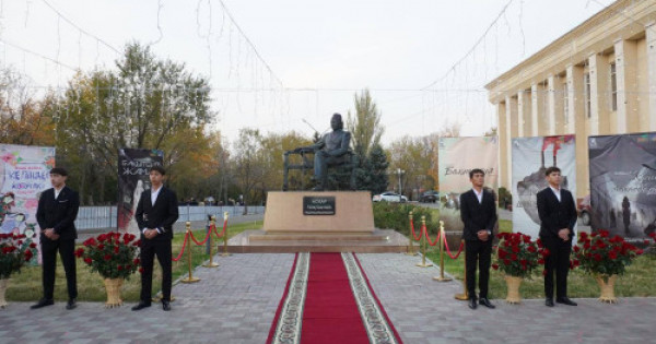 شارا بارىسىندا قاتىسۋشىلار قازاق تەاتر ونەرىنىڭ كوريفەيى اسقار توقپانوۆتىڭ ەسكەرتكىشىنە تاعزىم ەتىپ, گۇل شوقتارىن قويدى.
