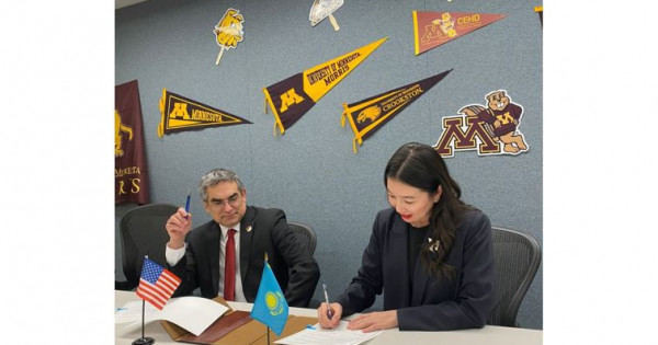 ۋنيۆەرسيتەت باسشىسى اقش-قا ساپارى بارىسىندا ميننەسوتا ۋنيۆەرسيتەتىنىڭ عىلىمي زەرتتەۋلەر جانە يننوۆاتسيالار جونىندەگى ۆيتسە-پرەزيدەنتى شاشانك پريا مىرزامەن جانە ءبىلىم جانە ادام دامۋى كوللەدجىنىڭ دەكانى, كامپبەلل ءبىلىم بەرۋ جانە ادام دامۋى سالاسىنداعى كوشباسشىلىق ءبولىمىنىڭ جەتەكشىسى مايكل رودريگەسپەن كەزدەسىپ, ءبىر جىلدىق دايىندىق جۇمىستارىنىڭ ناتيجەسىندە ماڭىزدى كەلىسىمگە قول جەتكىزگەن.
