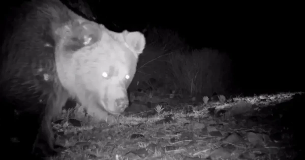 ناقتى اتاعاندا, پاركتە تۇراقتى جۇرگىزىلىپ كەلە جاتقان مونيتورينگ جۇمىستارى بارىسىندا ورناتىلعان فوتوتۇزاققا سيرەك كەزدەسەتىن تيان-شان قوڭىر ايۋى (Ursus arctos isabellinus) ءتۇسىپ قالعان.