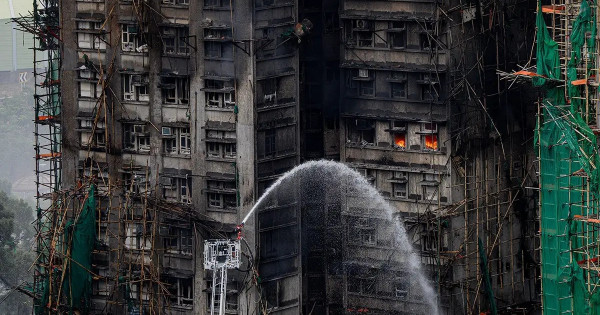 - كەشەندەگى سەگىز تۇرعىن بلوك شىلدە 2024 جىلدان بەرى جوندەۋدە, عيماراتتار بامبۋك قۇرىلىمدارىمەن جانە جاسىل تورلارمەن قاپتالعان.