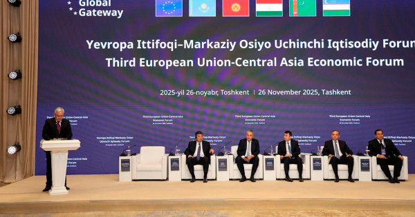 «ەۋروپالىق وداق – ورتالىق ازيا» ەكونوميكالىق فورۋمى – ەۋرووداق پەن ورتالىق ازيا ەلدەرى اراسىنداعى ەكونوميكالىق ءوزارا ءىس-قيمىل, ساۋدا, ينۆەستيتسيالار مەن تۇراقتى دامۋ ماسەلەلەرىن تالقىلاۋ جونىندە ماڭىزدى الاڭ. فورۋم اياسىندا ەكونوميكالىق بايلانىستاردى كەڭەيتۋ, كولىك پەن ەنەرگەتيكالىق بايلانىستى دامىتۋ, ورنىقتى جەتكىزۋ تىزبەكتەرىن نىعايتۋ, سونداي-اق تسيفرلاندىرۋ ۇدەرىستەرىن ىلگەرىلەتۋ ماسەلەلەرى تالقىلاندى.