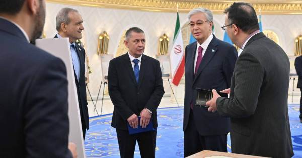 «يران مۇراعاتتارىندا قازاق حاندىعىنىڭ جانە قازاقتىڭ جاۋجۇرەك حالىق ەكەنى تۋرالى جازبالار ساقتالعان. تاۋكە حان مەن شاح سۇلتان حۋسەين اراسىندا تىعىز قارىم-قاتىناس ورناعان. ەكى ەل وكىلدەرى ماسكەۋدە كەزدەسىپ, يران ەلشىسى قازاق دالاسىنا ساپارمەن كەلدى دەگەن تاريحي مالىمەتتەر بار ەكەن. ابىلقايىر حان ءنادىر شاحقا ەلشى جىبەرىپ, بايلانىستى دامىتۋعا نيەت بىلدىرگەن. تۇركىستانداعى ازىرەت سۇلتان كەسەنەسىندەگى تايقازان يران شەبەرى ابدەلازيز شارافۋددين تەبريزيدىڭ شەبەرحاناسىندا جاسالعان», دەدى پرەزيدەنت.