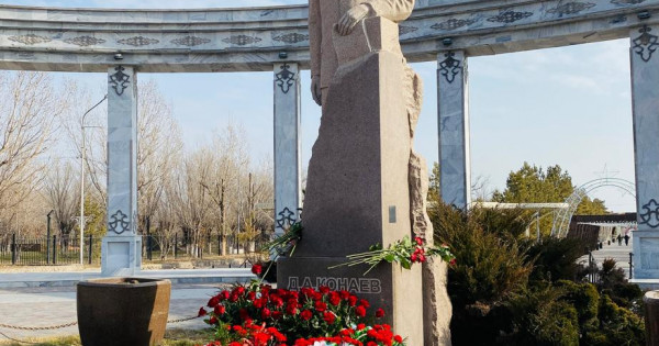 شارا بارىسىندا قاتىسۋشىلار ەسكەرتكىش الدىنا گۇل شوقتارىن قويىپ, ۇلت تاريحىندا وشپەس ءىز قالدىرعان تۇلعانىڭ رۋحىنا تاعزىم ەتتى.