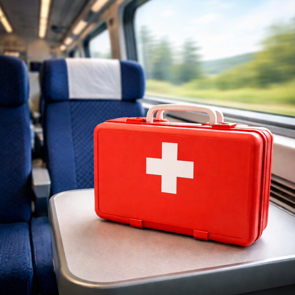 كومپانيا مالىمەتىنشە, بارلىق جولاۋشىلار پويىزدارىنىڭ جولسەرىكتەرى العاشقى مەديتسينالىق كومەك كورسەتۋ بويىنشا ارنايى دايارلىقتان وتكەن, ال ءار قۇرام مەديتسينالىق قوبديشامەن تولىق جابدىقتالعان. سوندىقتان دەنساۋلىققا قاتىستى كۇتپەگەن جاعداي تۋىنداسا, ەڭ اۋەلى جولسەرىكتىڭ كومەگىنە جۇگىنگەن ءجون.