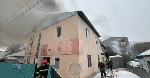 ءبىرىنشى ءورت ءسوندىرۋ جاساقتارى كەلگەن كەزدە عيمارات شاتىرىنىڭ اشىق جالىنمەن جانىپ جاتقانى انىقتالدى.