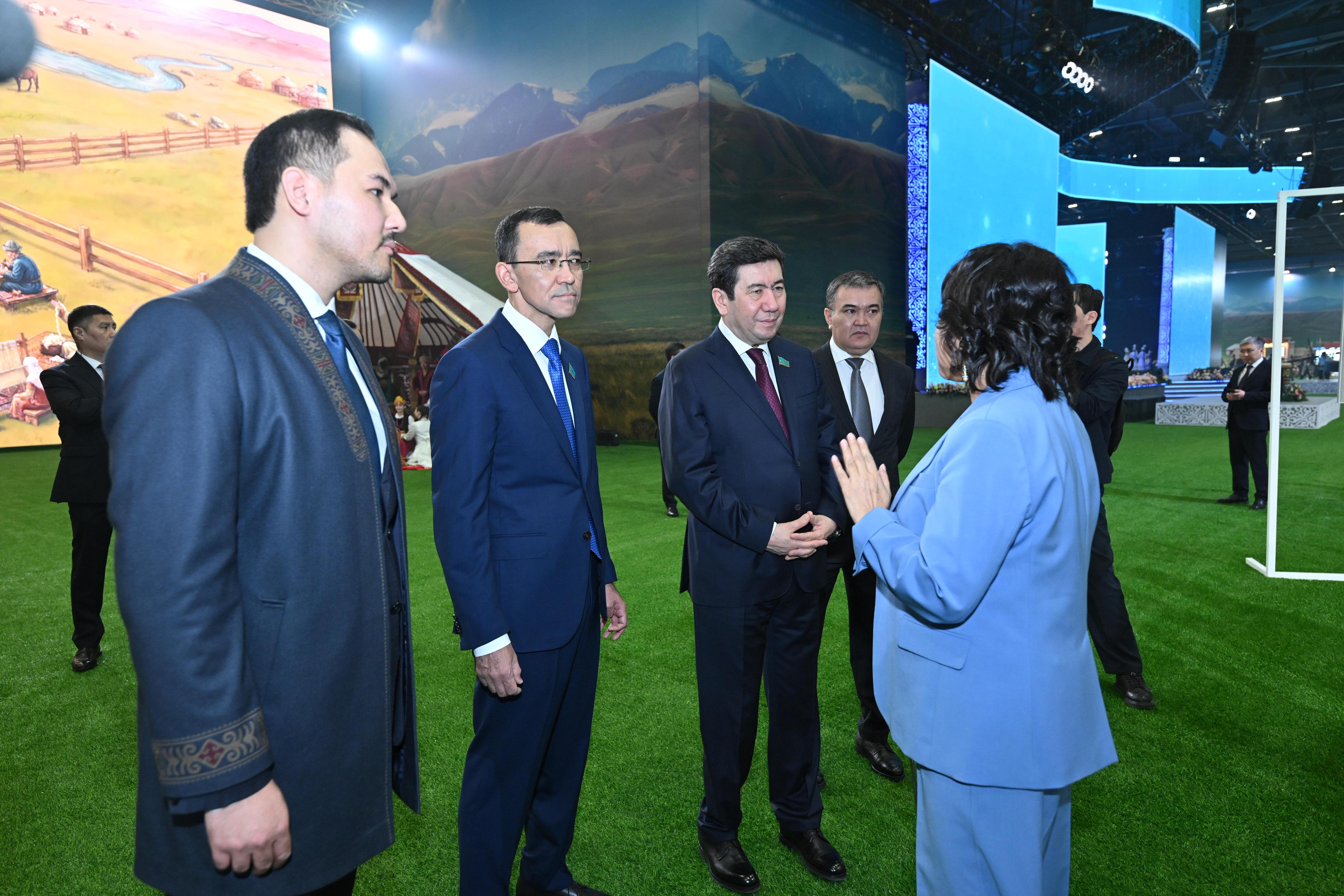 پارلامەنت پالاتالارىنىڭ باسشىلارى «EXPO» حالىقارالىق كورمە ورتالىعىنىڭ اۋماعىندا ورنالاسقان ەتنواۋىلعا باردى. ولار مەرەكەلىك ءىس-شارالارعا قاتىسۋشىلارمەن اڭگىمەلەسىپ, قازاق حالقىنىڭ ۇلتتىق قۇندىلىقتارى تۋرالى سىر شەرتەتىن «جەتى قازىنا» گولوگرافيالىق كورمەسىن تاماشالادى.
