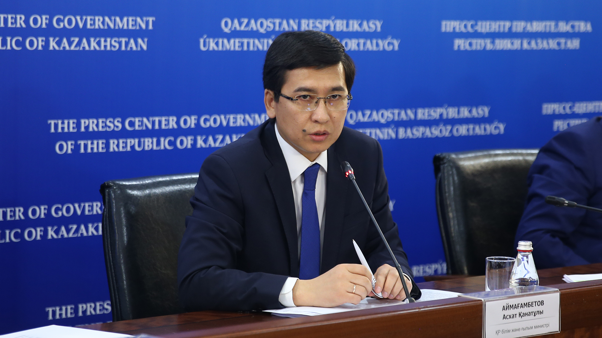 ءبىلىم جانە عىلىم ءمينسترى اسحات ايماعامبەتوۆ اباي قۇنانباي ۇلىنىڭ «سەنبە جۇرتقا, تۇرسا دا قانشا ماقتاپ» ولەڭىن جاتقا وقىدى.