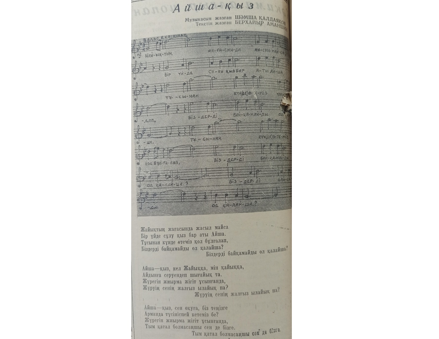 قالالىق مەملەكەتتىك ارحيۆ قورىندا جۇمىس جاساعان ۋاقىتىمدا «سوتسياليستىك قۇرىلىس» (قازىرگى «اتىراۋ») گازەتىنىڭ 1959 جىلدىڭ 15 مامىر كۇنگى سانىندا «ايشا – قىز» اتتى انگە كەزىكتىم. ءانىن «قازاق ءۆالسىنىڭ كورولى» اتانعان ءشامشى قالداياقوۆ, ولەڭىن اقىن بەرقايىر امانشين جازعان. بۇل ءاننىڭ بۇرىن-سوڭدى راديو, تەلەديدار, ساحنادا ورىندالعانىن مۇلدەم ەستىمەگەن سوڭ, قىزىعۋشىلىعىمدى تۋدىرعانى. ءان تۋرالى اتاقتى كومپوزيتور ءىليا جاقانوۆ اعامىزدان سۇراعانىمىزدا, ول كىسى ءشامشىنىڭ كۇنى بۇگىنگە دەيىن جارىققا شىقپاعان, جوعالىپ كەتكەن بەلگىسىز اندەرى بار ەكەندىگىن جوققا شىعارمادى. سوناۋ 50-جىلداردىڭ اياعىندا جاريالانعان اتالعان ءاندى ەستىمەگەنىن ايتتى. قازاقستاننىڭ ەڭبەك سىڭىرگەن قايراتكەرى, قازاق راديوسىنىڭ «التىن قور» ءبولىمىنىڭ جەتەكشىسى التىن يمانباەۆا دا بۇل ءاننىڭ قوردا جوق ەكەندىگىن ايتادى.