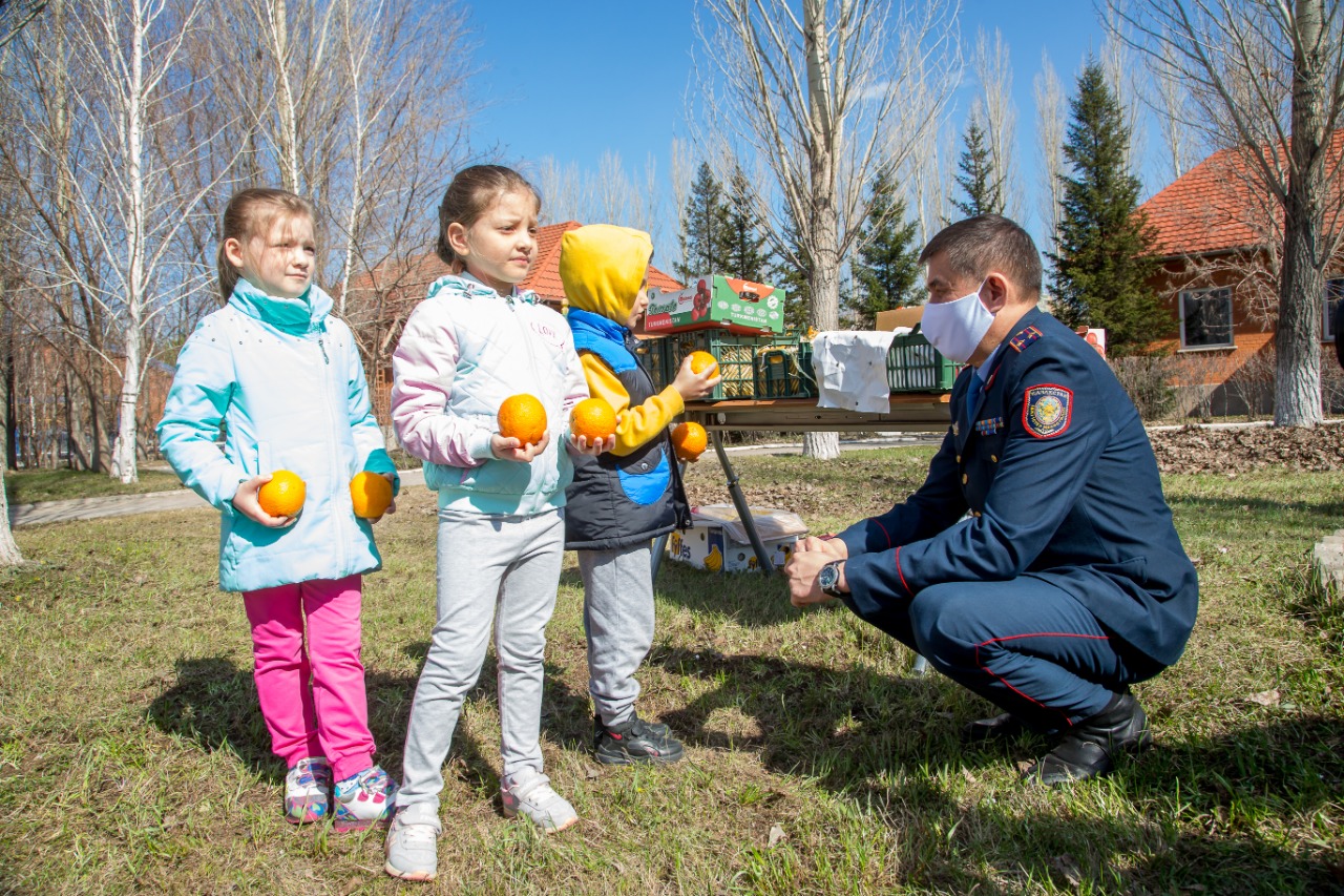 توتەنشە جاعداي كەزىندە كۇشەيتىلگەن رەجيمدە جۇمىس ىستەپ جاتقان پوليتسيا قىزمەتكەرلەرى ء«بىز بىرگەمىز» اكتسياسى اياسىندا بالالار ۇيىنە, قارتتار ۇيىنە جانە الەۋمەتتىك جاعىنان ءالسىز توپتارداعى وتباسىلارعا قولداۋ كورسەتۋدە. بۇل تۋرالى ءىىم ءباسپاسوز قىزمەتى حابارلادى.