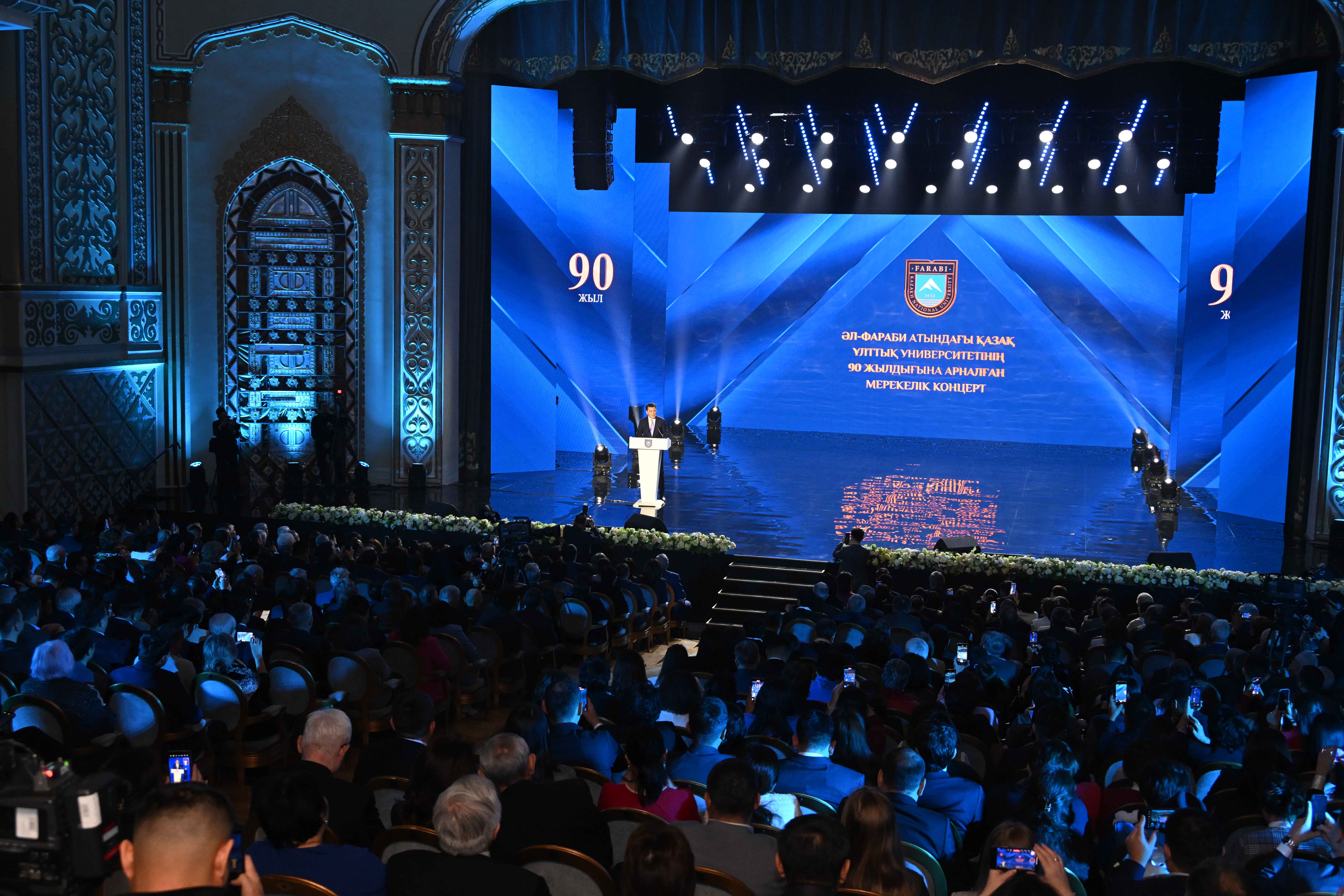 مەملەكەتتىك كەڭەسشى ەرلان قارين ءال-فارابي اتىنداعى قازاق ۇلتتىق ۋنيۆەرسيتەتىنىڭ قۇرىلعانىنا 90 جىل تولۋىنا وراي وتكەن سالتاناتتى جيىنعا قاتىستى.