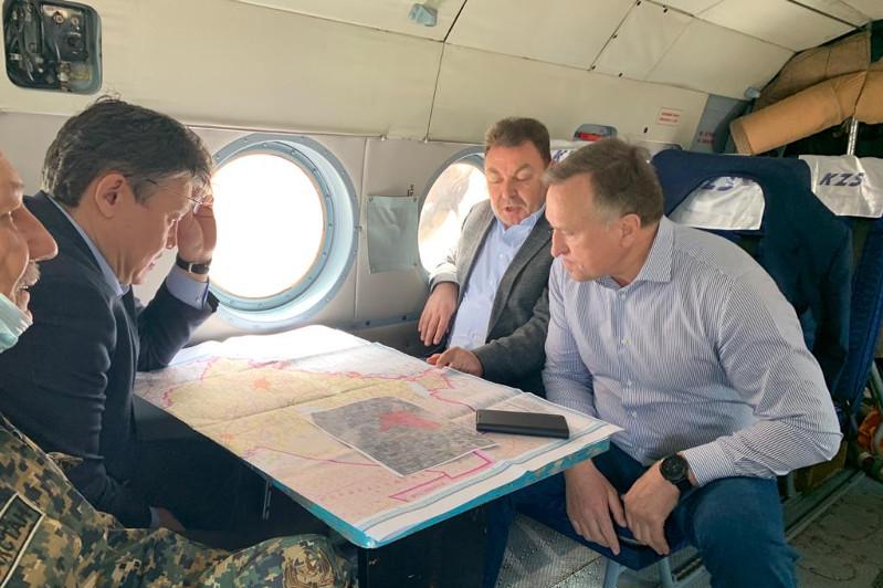 تۇركىستان وبلىسى ماقتاارال اۋدانىنداعى قازىرگى جاعدايدى باعالاۋ ءۇشىن وڭىرگە شۇعىل جەتكەن ىشكى ىستەر ءمينيسترىنىڭ ورىنباسارى يۋري يلين, ەكولوگيا, گەولوگيا جانە تابيعي رەسۋرستار ۆيتسە-ءمينيسترى سەرگەي گروموۆ, اۋىل شارۋاشىلىعى ۆيتسە-ءمينيسترى نۇربەك دايىربەكوۆ جانە ۇلتتىق ۇلان قولباسشىسىنىڭ ورىنباسارى ارلەن بۇركىتباەۆ سۋ باسۋ قاۋپى بار اۋماقتى اۋەدەن باقىلادى.