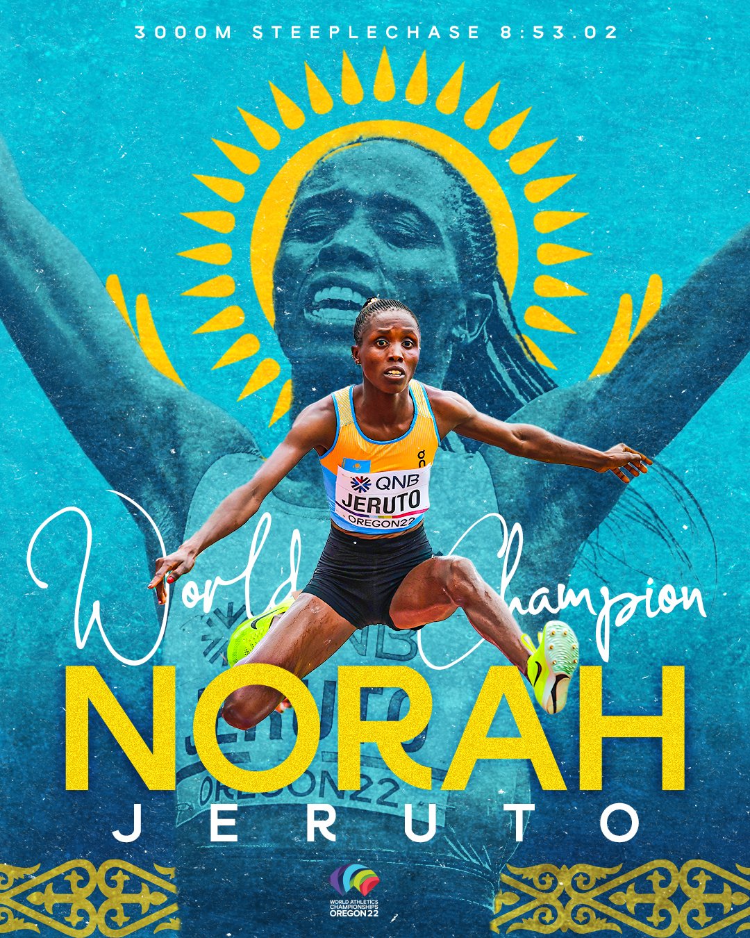 اقش ۋاقىتى بويىنشا سارسەنبىنىڭ كەشىندە, قازاقستان ۋاقىتىمەن بەيسەنبىنىڭ تاڭىندا مۇحيتتىڭ ارعى بەتىنەن ءسۇيىنشى حابار جەتتى. اقش-تىڭ ورەگون شتاتىنداعى يۋدجين قالاسىندا ءوتىپ جاتقان جەڭىل اتلەتيكادان XVIII الەم چەمپيوناتىنىڭ فينالىندا قازاقستاندىق سپورتشى تانۋي نورا دجەرۋتو مارەگە ءبىرىنشى جەتىپ, التىننان القا تاقتى.