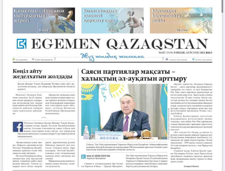 «ەگەمەن قازاقستان» رگ» اق – قازاقستان رەسپۋبليكاسىندا اۋداندىق ماڭىزى بار قالالارىنىڭ, اۋىلدارىنىڭ, كەنتتەرىنىڭ, اۋىلدىق وكرۋگتەرىنىڭ اكىمدەرىن سايلاۋ الدى ۇگىت-ناسيحات ماتەريالدارىن ورنالاستىرۋ ءۇشىن باسپا بەتتەرىن ۇسىنۋ ءتارتىبى مەن قاعيدالارى, تولەماقى كولەمى تۋرالى حابارلايدى.