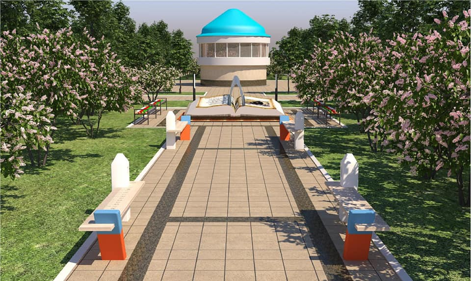 تۇركىستانعا ىرگەلەس كەنتاۋ قالاسىندا سالىناتىن اللەيادا ورىندىقتاردىڭ بارلىعى سىزعىش, وشىرگىش, بور سەكىلدى مەكتەپ قۇرالدارىنىڭ كەسكىنىمەن جاسالادى. ال, كوشە جارىقشامدارى قالامساپ قالپىمەن ورنالاسادى.