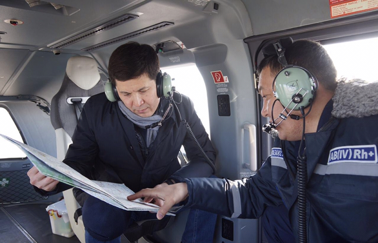 وبلىس اكىمى ابىلقايىر سقاقوۆ ءبىرىنشى ورىنباسارى سۇڭعات ەسىمحانوۆ, توتەنشە جاعدايلار دەپارتامەنتىنىڭ باستىعى ەرنۇر وتەگەنوۆپەن بىرگە اۋدانداعى سۋ تاسقىنى قاۋپى بار اۋماقتاردى ارنايى تىكۇشاقپەن ارالاپ شىقتى.