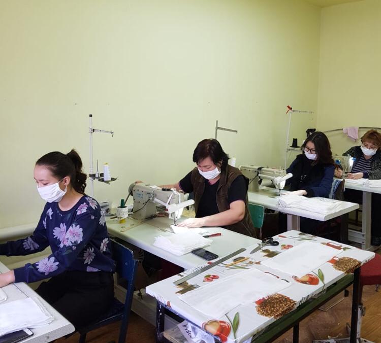 قاراعاندىلىق ىسمەرلەر «كەت, COVID-19!» دەگەن جازۋى بار ماسكالار تىگە باستادى