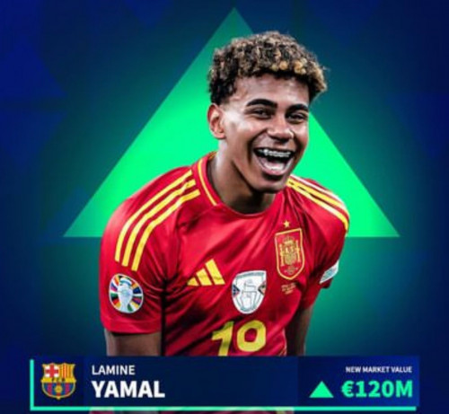 كاتالوندىق «بارسەلونا» مەن يسپانيا قۇراماسىنىڭ 17 جاسار ۆينگەرى لامين يامال Transfermarkt نۇسقاسى بويىنشا باعاسى قازىر 100 ميلليون ەۋرودان اساتىن ەڭ جاس فۋتبولشى اتاندى, دەپ حابارلايدى Egemen.kz.