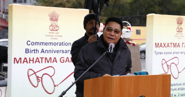 Ол Қазақстанда да Махатма Гандидің мұрасын жоғары бағалап, Астана мен Алматы қалаларында ескерткіштер, әл-Фараби атындағы Қазақ ұлттық университетінде Үндістанды зерттеу орталығы, сондай-ақ Алматыда Махатма Ганди мұражайы мен мектебі құрылғанын айтты. Бұлар Үндістан мен Қазақстан арасындағы достық пен ортақ құндылықтардың терең байланысын көрсетеді.