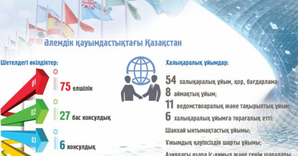 Еліміз 1992 жылы БҰҰ-ға мүше болған соң, біртіндеп аймақтық, әлемдік ұйымдардың құрамына ене бастады. Бірқатарына төрағалық та етті. Елшілік, консулдықтармен қатар халықаралық ұйымдарда тұрақты өкілдіктерін ашты. Дипломатиялық миссияларды орындап, бітімгерлік жолға өз алаңын ұсынды. Сондай-ақ еліміз – Еуроодақтың Орталық Азиядағы басты серіктесі.