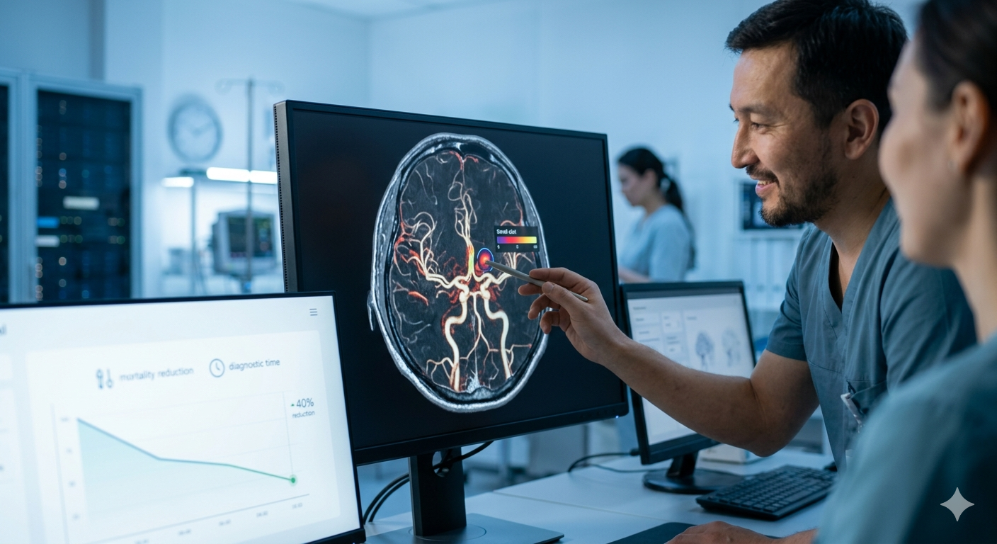 «دەنساۋلىق ساقتاۋ سالاسىنداعى ناتيجەلى كەيستەردىڭ ءبىرى – Cerebra AI. بۇل – ءينسۋلتتى ەرتە دياگنوستيكالاۋعا ارنالعان جاساندى ينتەللەكت. ول كومپيۋتەرلىك توموگرافيا ناتيجەسىن 30 مينۋتتىڭ ورنىنا 5-10 مينۋت ىشىندە تالدايدى. ول ينسۋلت دياگنوستيكاسىن ەداۋىر جىلدامداتادى جانە دالدىگىن ارتتىرادى. جۇيە ەلورداداعى 17 ەمحانادا, سونداي-اق اقمولا, ماڭعىستاۋ, جامبىل جانە الماتى وبلىستارىندا ەنگىزىلدى», دەدى مينيستر.دارىگەرلەر جي كومەگىمەن ينسۋلت پەن ونكولوگيالىق اۋرۋلاردى ەرتە انىقتاپ جاتىر