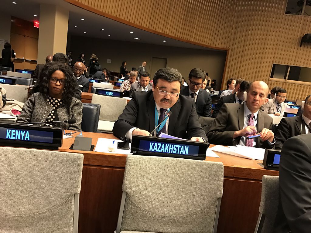 Конференцияның жоғарғы деңгейлі сегментінде жасаған мәлімдемесінде қазақстандық дипломат Конференцияның қатысушыларын еліміздің ядролық қарусыздандыру саласында атқарып жатқан әрекеттері туралы баяндады. Сондай-ақ, Қазақстан Республикасының Президенті Нұрсұлтан Назарбаевтың БҰҰ Бас Ассамблеясының 70-ші сессиясында жария етілген 2045 жылы Ұйымның жүз жылдығына орай ядролық қарудан азат әлем құру туралы бастамасының және Елбасының «Әлем. ХХІ ғасыр» Манифесінің маңыздылықтары айтылып өтілді.