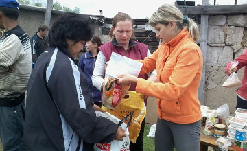 Гумантиарлық жүк көлігі алдымен Астрахан ауданының Новый Колутон елді мекеніне келді. Мұнда 17 үйді су басқан. Жұртшылықтың көңілі жабырқаулы болғанымен, азық түлік тиелген жүк көлігін көрген көңілдері біршама көтерілді.