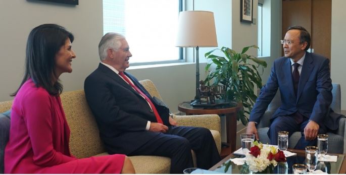 ​نيۋ-يوركتە 28 ءساۋىر كۇنى قازاقستاننىڭ سىرتقى ىستەر ءمينيسترى قايرات ءابدىراحمانوۆ اقش-تىڭ مەملەكەتتىك حاتشىسى رەكس تيللەرسونمەن كەزدەستى, دەپ حابارلايدى قر ءسىم ءباسپاسوز قىزمەتى.