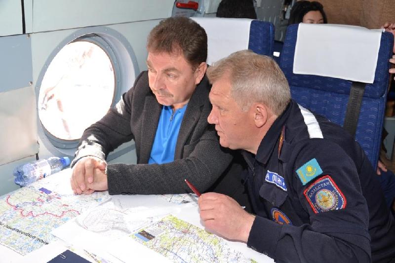 Олар Петропавл қаласына жақын Есіл өзені және одан төмен Ресей Федерациясы Түмен облысына дейінгі өзен алқабында орналасқан елді мекендердегі су тасқынынан зардап шеккен аймақтарды тікұшақпен аралап шықты.
