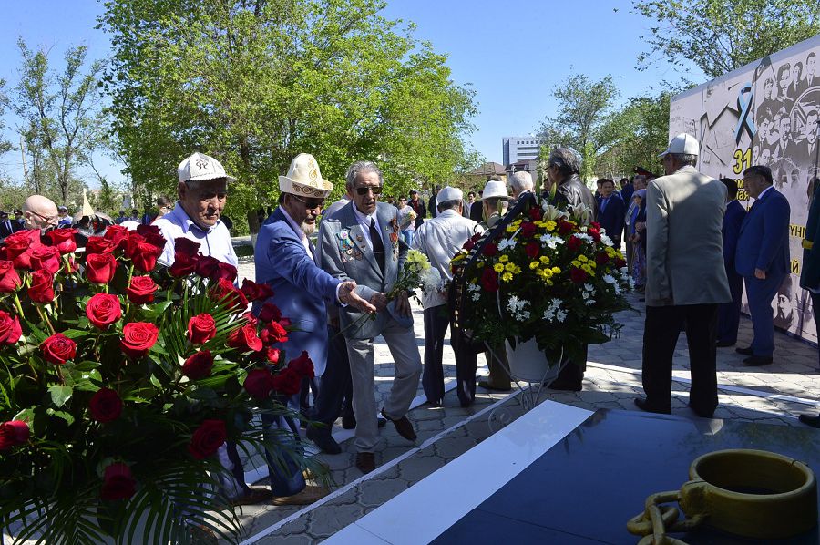 Жеңіс саябағындағы репрессия құрбандарына арналған мемориалдық тақтаға гүл шоқтары қойылды. Шараға облыстық ардагерлер кеңесі, Қазақстан халқы ассамблеясының мүшелері, өңірдегі мекеме, кәсіпорын ұжымдарымен бірге саяси қуғын-сүргінге ұшыраған азаматтардың ұрпақтары да қатысты.