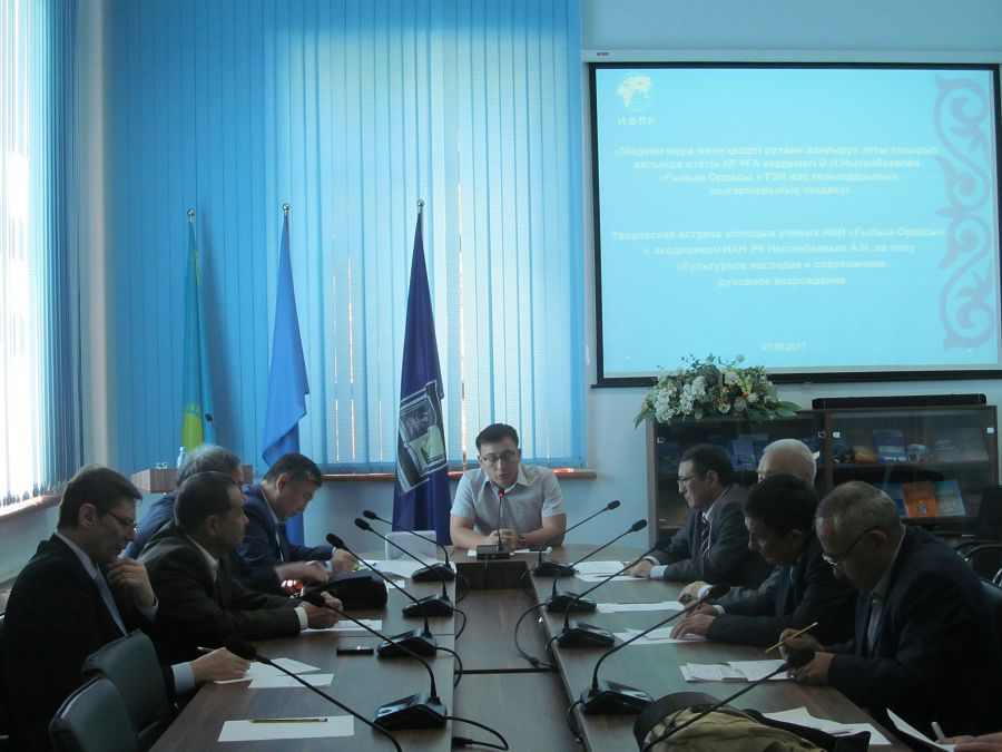 Осы кездесу шеңберінде ел Президенті Н.Ә.Назарбаевтың бағдарламалық мақаласының негізгі идеологиялық бағыттарын талқылап, рухани жаңғыру және Қазақстан халқының алдағы уақыттағы мәдениетінің дамуы туралы келелі ойлар айтылды. Академик, философия ғылымдарының докторы, профессор Ә.Нысанбаев «Мәдени мұра» бағдарламасы аясында шыққан әлемдік философия еңбектерінің маңыздылығына тоқталып, сонымен қоса қазақ философиясын да алдыңғы қатарлы зерттеу еңбектеріне енгізіп, өз дәрежесінде зерттеу керектігін айтты. Философия, саясаттану және дінтану институты директорының міндетін атқарушы, философия ғылымдарының докторы, профессор С.Нұрмұратов, әл-Фараби атындағы ҚазҰУ-дың философия және саясаттану факультетінің профессоры, философия ғылымдарының докторы Т. Ғабитов, филология ғылымдарының кандидаты, доцент Т. Әлібек сөз сөйлеп, Елбасы мақаласындағы ғылым, білімге қатысты тармақтарды жан-жақты саралап, асықпай шешім шығаруды ұсынды.