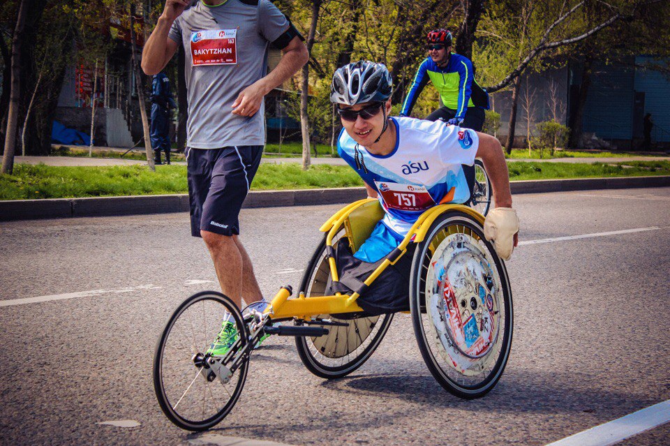 Әлгі жігіт сілейіп тұрды да қалды. Тілін жұтып қойғандай. Мүгедектер арбасымен 42 шақырымдық жарысқа түскен өлермен жігіттің мына ерлігіне басын шайқап тұрды да қалды...