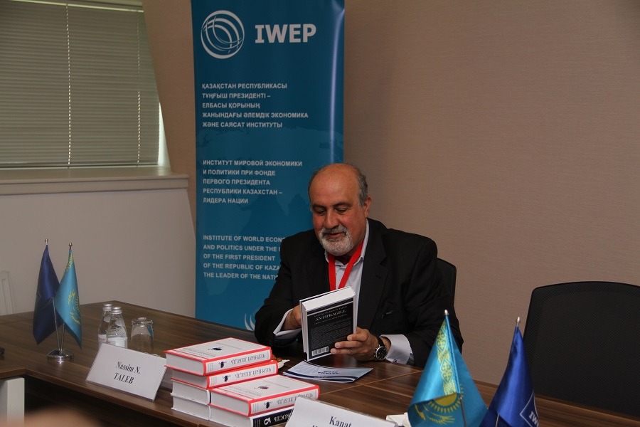 – Нассим Талебтің кітаптары әлемдік бестселлерге айналды. ҚР Тұңғыш Президенті – Елбасы Қорымен бірге біз автордың «қара аққулар» теориясы туралы кітабын қазақ тіліне аударуды ұсынғымыз келеді, – деді өз сөзінде ӘЭСИ директоры Ержан Салтыбаев.