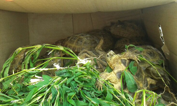 Машинаға жәшіктерге салынған 64 тотықұс пен 60 тасбақа тиелген. «Қайрақ» өткізу бекетінің бөлім бастығы Бахрам Дараевтың айтуынша, жолаушылар тоты құс пен тасбақаны Ресейге сатуға апара жатқан болуы керек. Жүргізуші Қазақстан азаматы, онымен бірге екі жолаушы да ұсталды. Ал машинадағы жануарлар тиісті орындарға жіберілді.
