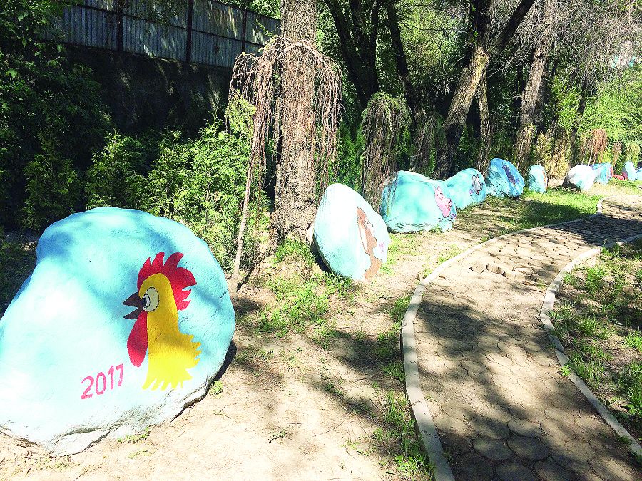 Үлкен Алматы өзенінің осы аумағы өзгеріп сала берген. Терек пен қайың құлпырып, ойын алаңдары мен әткеншектер келісті бояуын тапқан. Өзен жағасында жыл санауымыз бойынша он екі тас мәнісін айшықтайды. Биылғы жыл Тауық жылынан басталып, әрбір жылдың бейнесі – өз кейіпкері суреттеледі. Ойын баласы үшін оның мәнін ұғынуға, тастың таңбаларын түсінуге таптырмайтын дүниелер. Тастағы таңбалар жануарлар әлемін таныстыра түседі. Жаратылыстың тылсым әлемін көз алдыңа әкеледі. Тау өзенінің гүрілдеген таңғы сарыны алыстарға кетеді. Балалардың бал күлкісі қаланың мазасыз көліктерінің шуылынан алыс, шалғынды қойнаудан естіледі.Теренкурдегі таңбалы тастар айшықты өрнектерімен балаларды тартымды ойларға жетелейді.